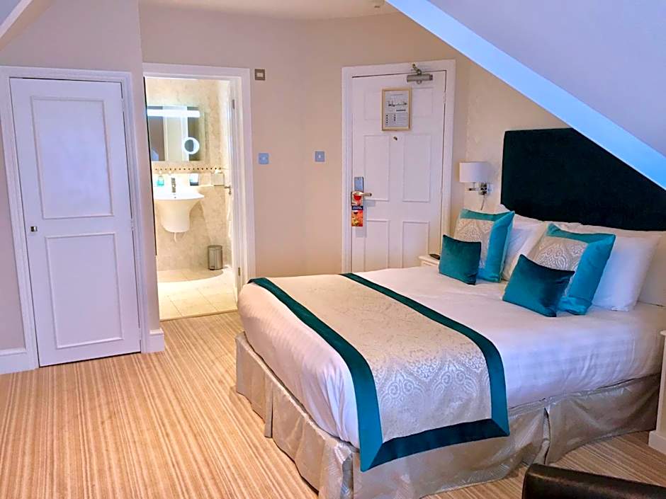 This luxury double room features a four poster bed, seating area and bathrobes.