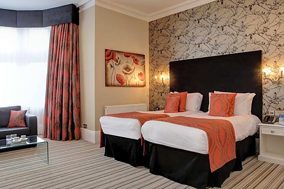 This twin/double room has a flat-screen TV, bathrobe and seating area.